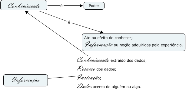 Teste, Conhecimento é Ato ou efeito de conhecer; Informação ou noção adquiridas pela experiência., Conhecimento é Poder, Informação Conhecimento extraído dos dados; Resumo dos dados; Instrução; Dados acerca de alguém ou algo. Conhecimento