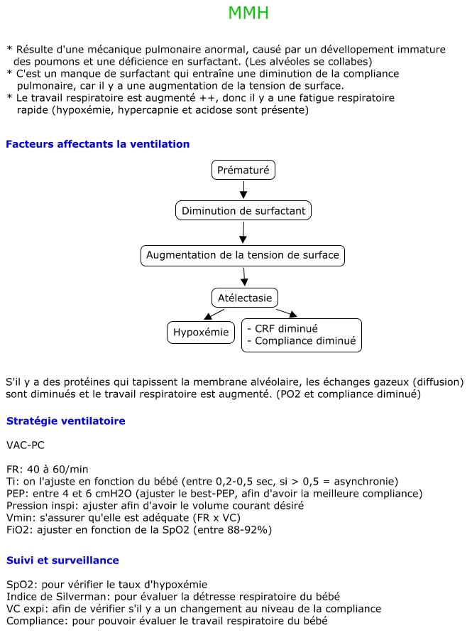 MMH, Augmentation de la tension de surface Atélectasie, Atélectasie Hypoxémie, Atélectasie - CRF diminué - Compliance diminué, Prématuré Diminution de surfactant, Diminution de surfactant Augmentation de la tension de surface