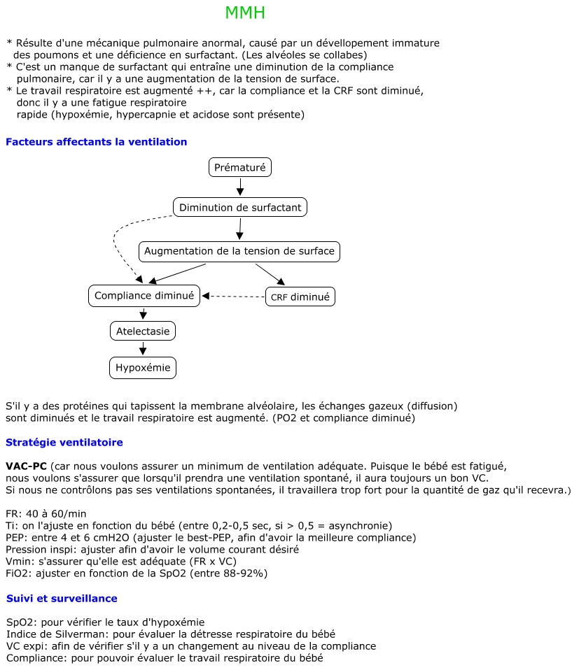 MMH2, Atelectasie Hypoxémie, Augmentation de la tension de surface CRF diminué, Augmentation de la tension de surface Compliance diminué, CRF diminué Compliance diminué, Diminution de surfactant Compliance diminué, Prématuré Diminution de surfactant, Compliance diminué Atelectasie, Diminution de surfactant Augmentation de la tension de surface
