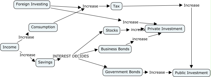 Chapter 6 The Role of National Saving, Consumption Increase Tax, Business Bonds increase Private Investment, Stocks increase Private Investment, Foreign Investing Increase Private Investment, Income Increase Savings, Tax Increase Public Investment, Foreign Investing Increase Tax, Savings INTEREST DECIDES Stocks, Savings INTEREST DECIDES Government Bonds, Income Increase Consumption