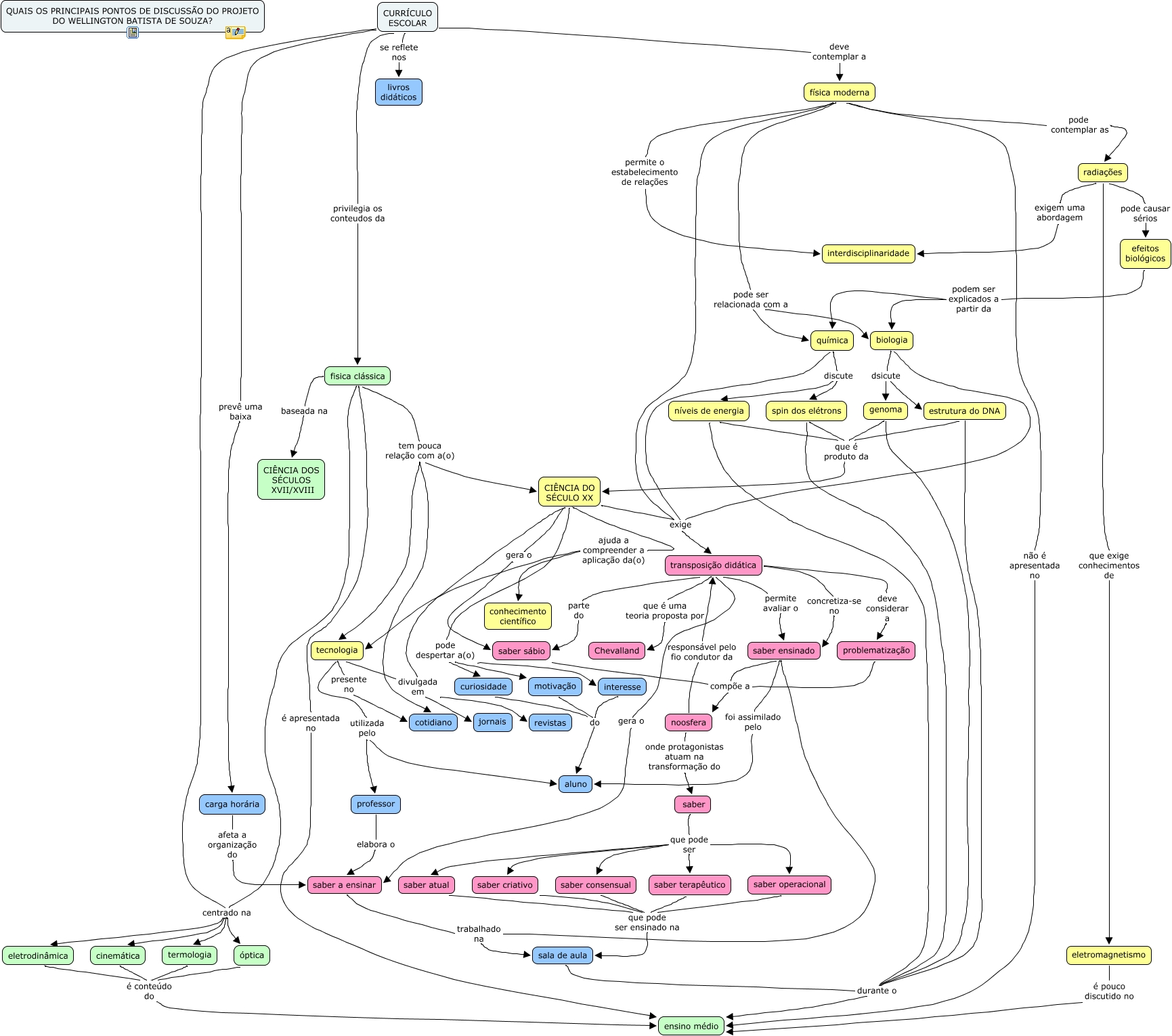 Este Mapa Conceitual tem informações relacionadas a: EDM5806_Souza220507, genoma que é produto da CIÊNCIA DO SÉCULO XX, eletrodinâmica é conteúdo do ensino médio, spin dos elétrons durante o ensino médio, CURRÍCULO ESCOLAR se reflete nos livros didáticos, CIÊNCIA DO SÉCULO XX pode despertar a(o) curiosidade, radiações exigem uma abordagem interdisciplinaridade, fisica clássica centrado na óptica, problematização compõe a noosfera, saber ensinado foi assimilado pelo aluno, CIÊNCIA DO SÉCULO XX pode despertar a(o) interesse