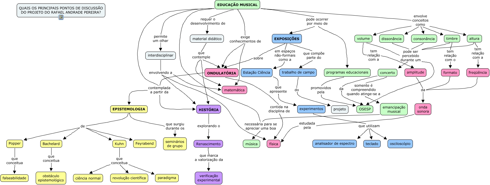 Este Mapa Conceitual tem informações relacionadas a: Anex11_Pereira050607, material didático que contemple matemática, experimentos que utilizam teclado, amplitude da onda sonora, material didático que contemple HISTÓRIA, EDUCAÇÃO MUSICAL exige conhecimentos de ONDULATÓRIA, EDUCAÇÃO MUSICAL contemplada a partir da EPISTEMOLOGIA, Kuhn que conceitua revolução científica, EXPOSIÇÕES sobre ONDULATÓRIA, dissonância pode ser percebido durante um concerto, EDUCAÇÃO MUSICAL envolve conceitos como timbre