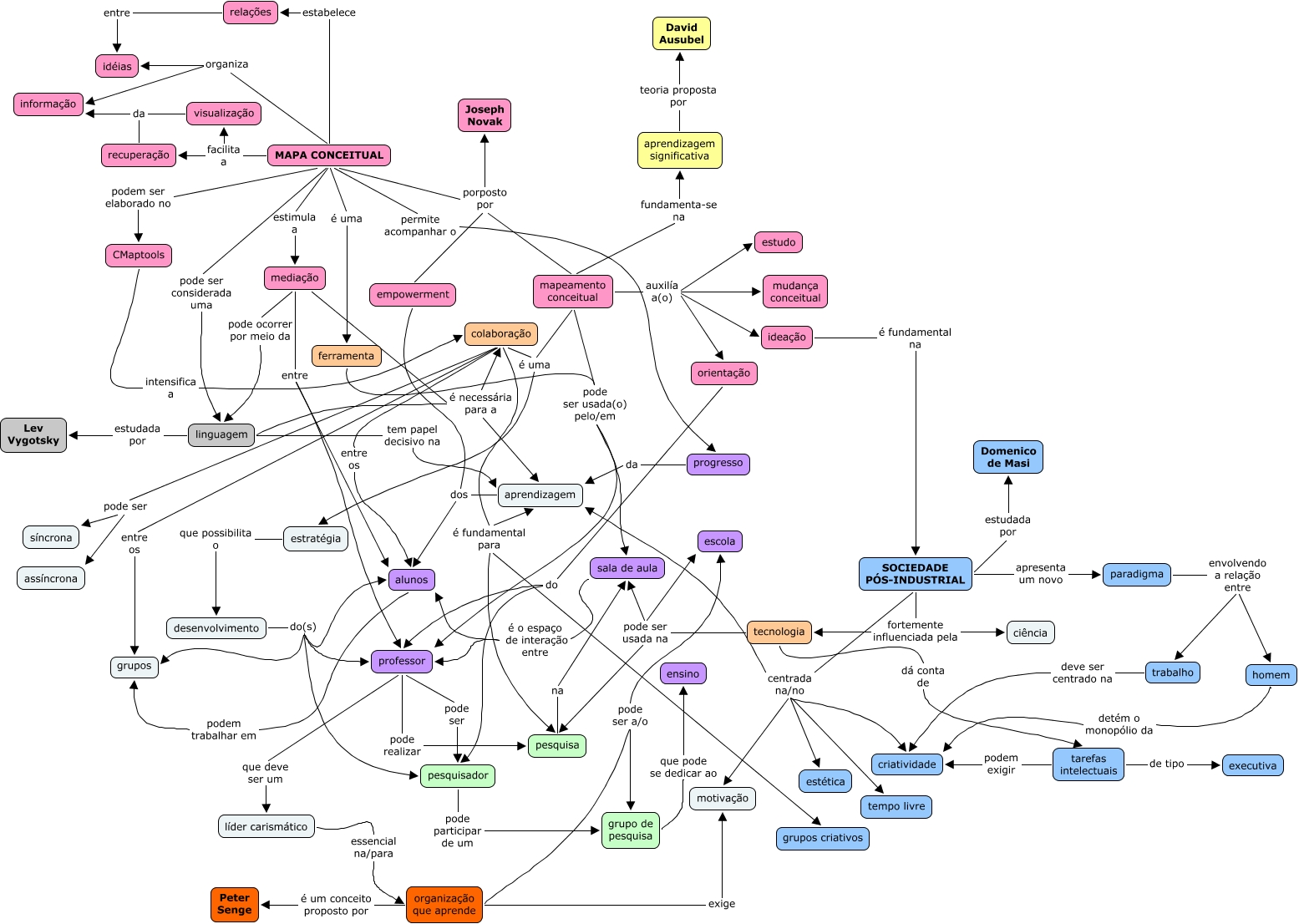 Este Mapa Conceitual tem informações relacionadas a: Chapter2_v5, colaboração entre os grupos, mapeamento conceitual auxilía a(o) orientação, recuperação da informação, MAPA CONCEITUAL podem ser elaborado no CMaptools, estratégia que possibilita o desenvolvimento, orientação do professor, grupo de pesquisa que pode se dedicar ao ensino, paradigma envolvendo a relação entre trabalho, SOCIEDADE PÓS-INDUSTRIAL centrada na/no estética, SOCIEDADE PÓS-INDUSTRIAL centrada na/no motivação