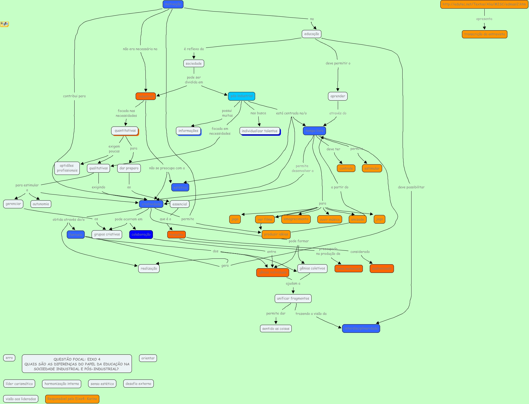 Este Mapa Conceitual tem informações relacionadas a: MC - EIXO 4_V1, pós-industrial possui muitas informações, tempo livre permite desenvolver a criatividade, criatividade pode formar gênios coletivos, industrial focada nas necessidades quantitativas, qualitativas para estimular a criatividade, tempo livre gera realização, tempo livre para amizade, criatividade obtida através do/a realização, gênios individuais ajudam a unificar fragmentos, criatividade pode formar gênios individuais