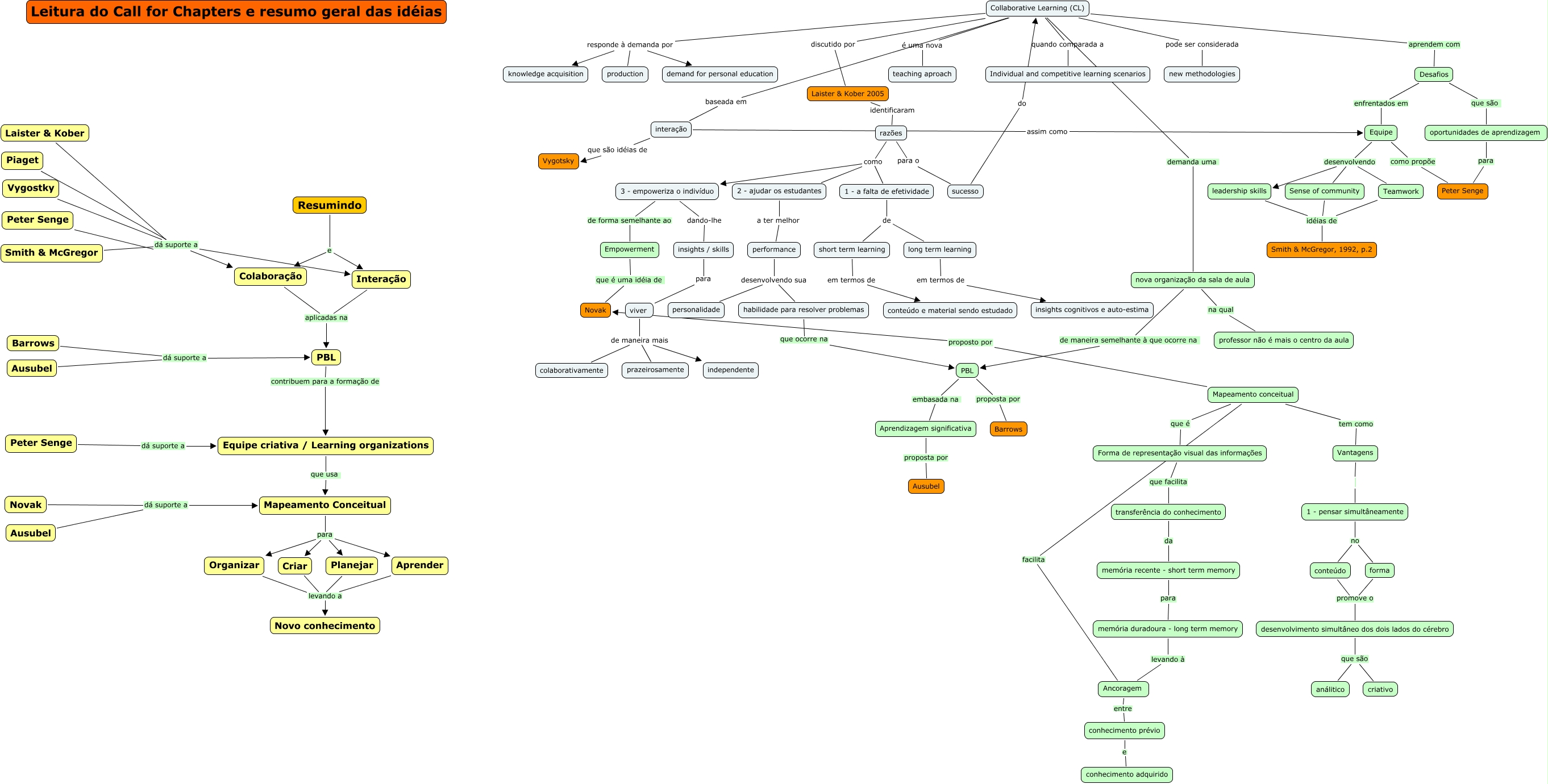 Este Mapa Conceitual tem informações relacionadas a: Chapter2_v8, oportunidades de aprendizagem para Peter Senge, Aprender levando a Novo conhecimento, insights / skills para viver, Forma de representação visual das informações que facilita transferência do conhecimento, sucesso do Collaborative Learning (CL), Vantagens 1 - pensar simultâneamente, Peter Senge dá suporte a Equipe criativa / Learning organizations, Aprendizagem significativa proposta por Ausubel, Vygostky dá suporte a Colaboração, Empowerment que é uma idéia de Novak