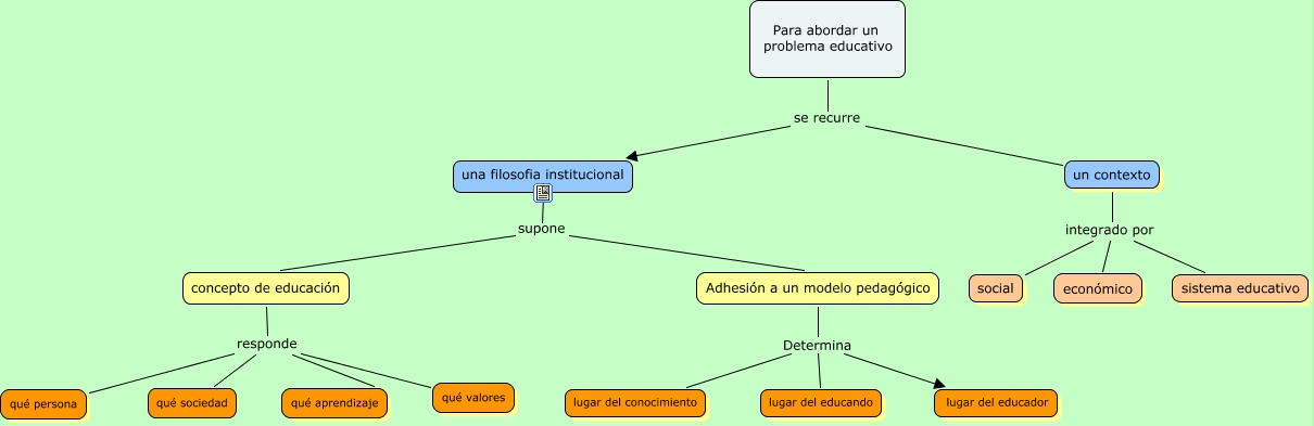 marylinvignoli - gabriel fernández, un contexto integrado por social, una filosofia institucional supone concepto de educación, concepto de educación responde qué sociedad, concepto de educación responde qué valores, Adhesión a un modelo pedagógico Determina lugar del conocimiento, un contexto integrado por económico, un contexto integrado por sistema educativo, Para abordar un problema educativo se recurre una filosofia institucional, Adhesión a un modelo pedagógico Determina lugar del educando, concepto de educación responde qué persona