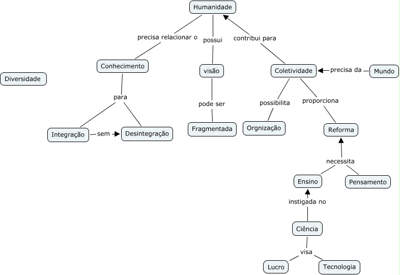 Sem título 1, Ciência visa Lucro, Coletividade possibilita Orgnização, visão pode ser Fragmentada, Integração sem Desintegração, Ciência visa Tecnologia, Conhecimento para Integração, Mundo precisa da Coletividade, Humanidade possui visão, Ciência instigada no Ensino, Conhecimento para Desintegração