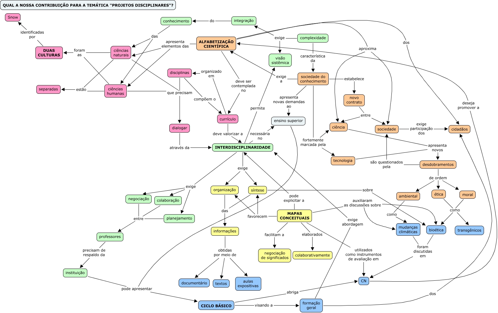 Este Mapa Conceitual tem informações relacionadas a: Novedades Educativas, ciências naturais foram as DUAS CULTURAS, ética como transgênicos, desdobramentos de ordem moral, ALFABETIZAÇÃO CIENTÍFICA aproxima ciência, INTERDISCIPLINARIDADE exige negociação, sociedade do conhecimento estabelece novo contrato, currículo organizado em disciplinas, sociedade do conhecimento fortemente marcada pela tecnologia, negociação entre professores, CICLO BÁSICO abriga CN