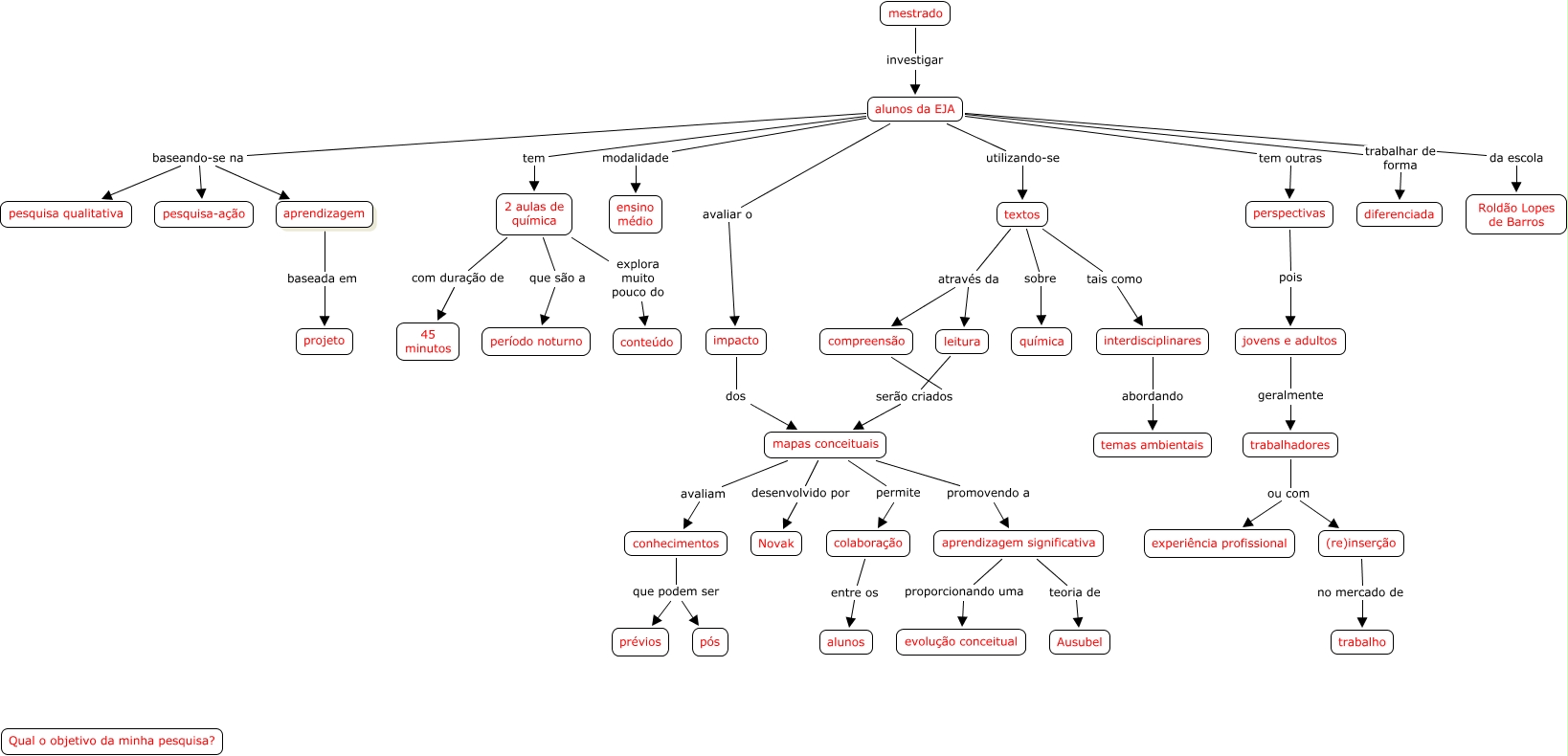 projetodemestrado2, textos tais como interdisciplinares, alunos da EJA modalidade ensino médio, mapas conceituais desenvolvido por Novak, alunos da EJA baseando-se na pesquisa-ação, conhecimentos que podem ser pós, (re)inserção no mercado de trabalho, trabalhadores ou com (re)inserção, aprendizagem significativa teoria de Ausubel, trabalhadores ou com experiência profissional, textos sobre química