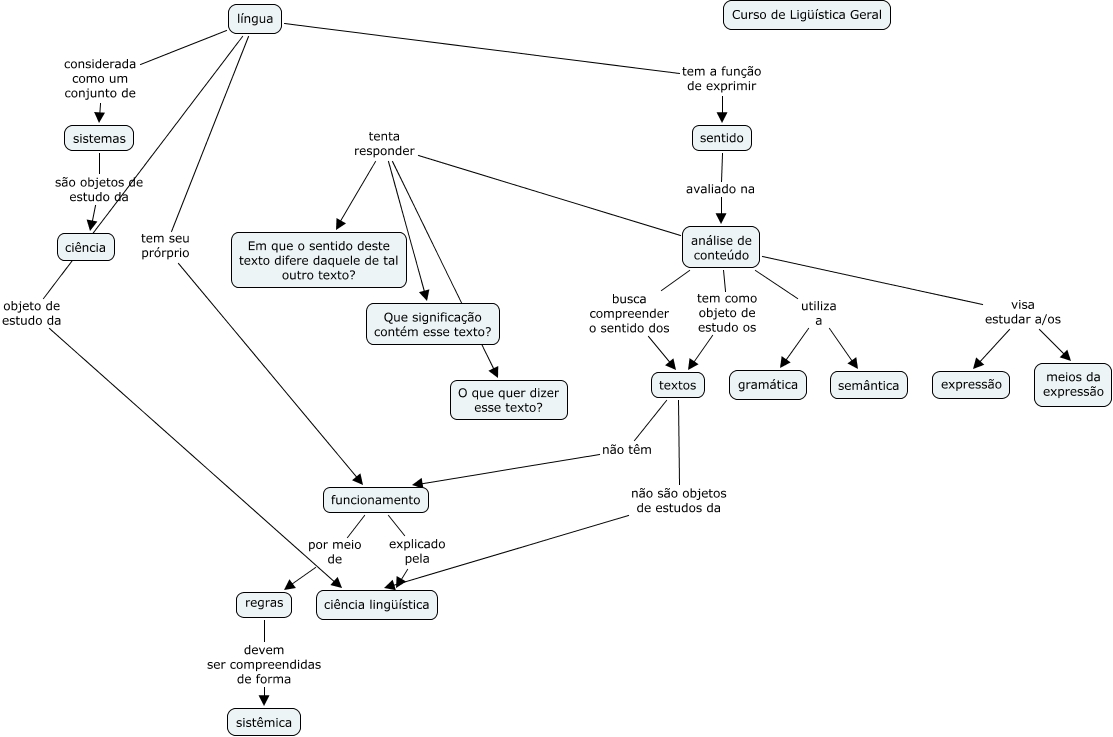Este Mapa Conceitual tem informações relacionadas a: Análise automática do discurso, textos não têm funcionamento, língua considerada como um conjunto de sistemas, análise de conteúdo busca compreender o sentido dos textos, análise de conteúdo utiliza a semântica, análise de conteúdo tenta responder Que significação contém esse texto?, sentido avaliado na análise de conteúdo, língua objeto de estudo da ciência lingüística, textos não são objetos de estudos da ciência lingüística, análise de conteúdo tenta responder O que quer dizer esse texto?, regras devem ser compreendidas de forma sistêmica