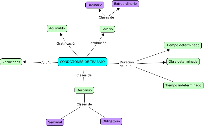 condiciones de trabajo, CONDICIONES DE TRABAJO Al año Vacaciones, CONDICIONES DE TRABAJO Duración de la R.T. Obra determinada, Salario Clases de Extraordinario, CONDICIONES DE TRABAJO Duración de la R.T. Tiempo determinado, CONDICIONES DE TRABAJO Duración de la R.T. Tiempo indeterminado, CONDICIONES DE TRABAJO Gratificación Aguinaldo, Descanso Clases de Obligatorio, CONDICIONES DE TRABAJO Retribución Salario, CONDICIONES DE TRABAJO Clases de Descanso, Descanso Clases de Semanal
