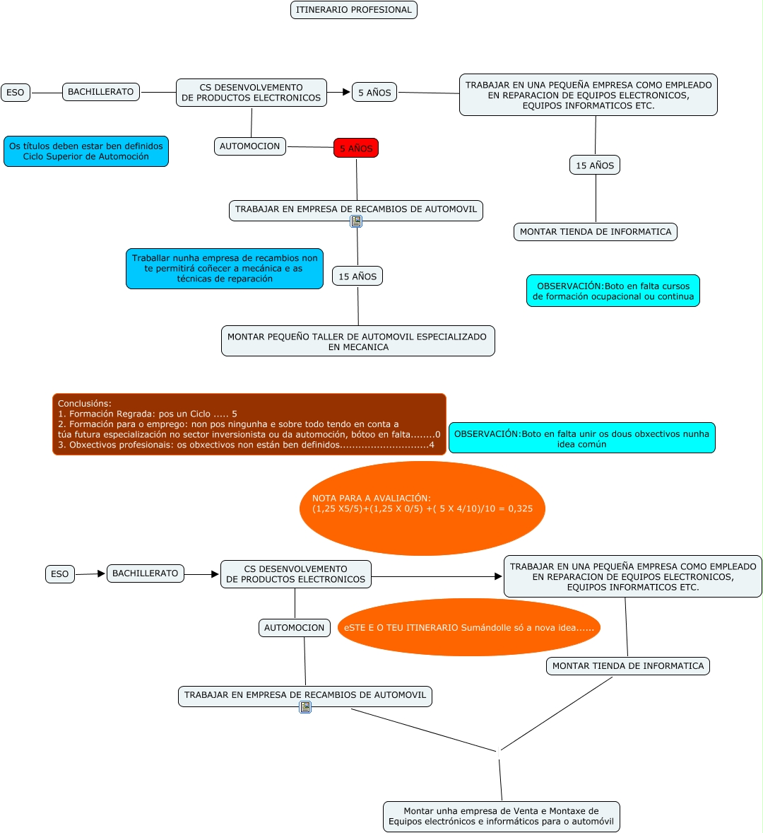 Este mapa conceptual tiene información relacionada a: Mi itinerario profesional, CS DESENVOLVEMENTO DE PRODUCTOS ELECTRONICOS ???? 5 AÑOS, 15 AÑOS ???? MONTAR PEQUEÑO TALLER DE AUTOMOVIL ESPECIALIZADO EN MECANICA, ESO ???? BACHILLERATO, AUTOMOCION ???? TRABAJAR EN EMPRESA DE RECAMBIOS DE AUTOMOVIL, TRABAJAR EN EMPRESA DE RECAMBIOS DE AUTOMOVIL ???? 15 AÑOS, MONTAR TIENDA DE INFORMATICA Montar unha empresa de Venta e Montaxe de Equipos electrónicos e informáticos para o automóvil, BACHILLERATO ???? CS DESENVOLVEMENTO DE PRODUCTOS ELECTRONICOS, TRABAJAR EN UNA PEQUEÑA EMPRESA COMO EMPLEADO EN REPARACION DE EQUIPOS ELECTRONICOS, EQUIPOS INFORMATICOS ETC. ???? MONTAR TIENDA DE INFORMATICA, CS DESENVOLVEMENTO DE PRODUCTOS ELECTRONICOS ???? TRABAJAR EN UNA PEQUEÑA EMPRESA COMO EMPLEADO EN REPARACION DE EQUIPOS ELECTRONICOS, EQUIPOS INFORMATICOS ETC., TRABAJAR EN UNA PEQUEÑA EMPRESA COMO EMPLEADO EN REPARACION DE EQUIPOS ELECTRONICOS, EQUIPOS INFORMATICOS ETC. ???? 15 AÑOS