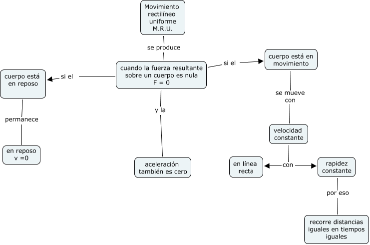 movimiento rectilíneo uniforme, cuando la fuerza resultante sobre un cuerpo es nula F = 0 si el cuerpo está en movimiento, Movimiento rectilíneo uniforme M.R.U. se produce cuando la fuerza resultante sobre un cuerpo es nula F = 0, cuando la fuerza resultante sobre un cuerpo es nula F = 0 si el cuerpo está en reposo, velocidad constante con rapidez constante, cuerpo está en movimiento se mueve con velocidad constante, cuando la fuerza resultante sobre un cuerpo es nula F = 0 y la aceleración también es cero, cuerpo está en reposo permanece en reposo v =0, velocidad constante con en línea recta, rapidez constante por eso recorre distancias iguales en tiempos iguales