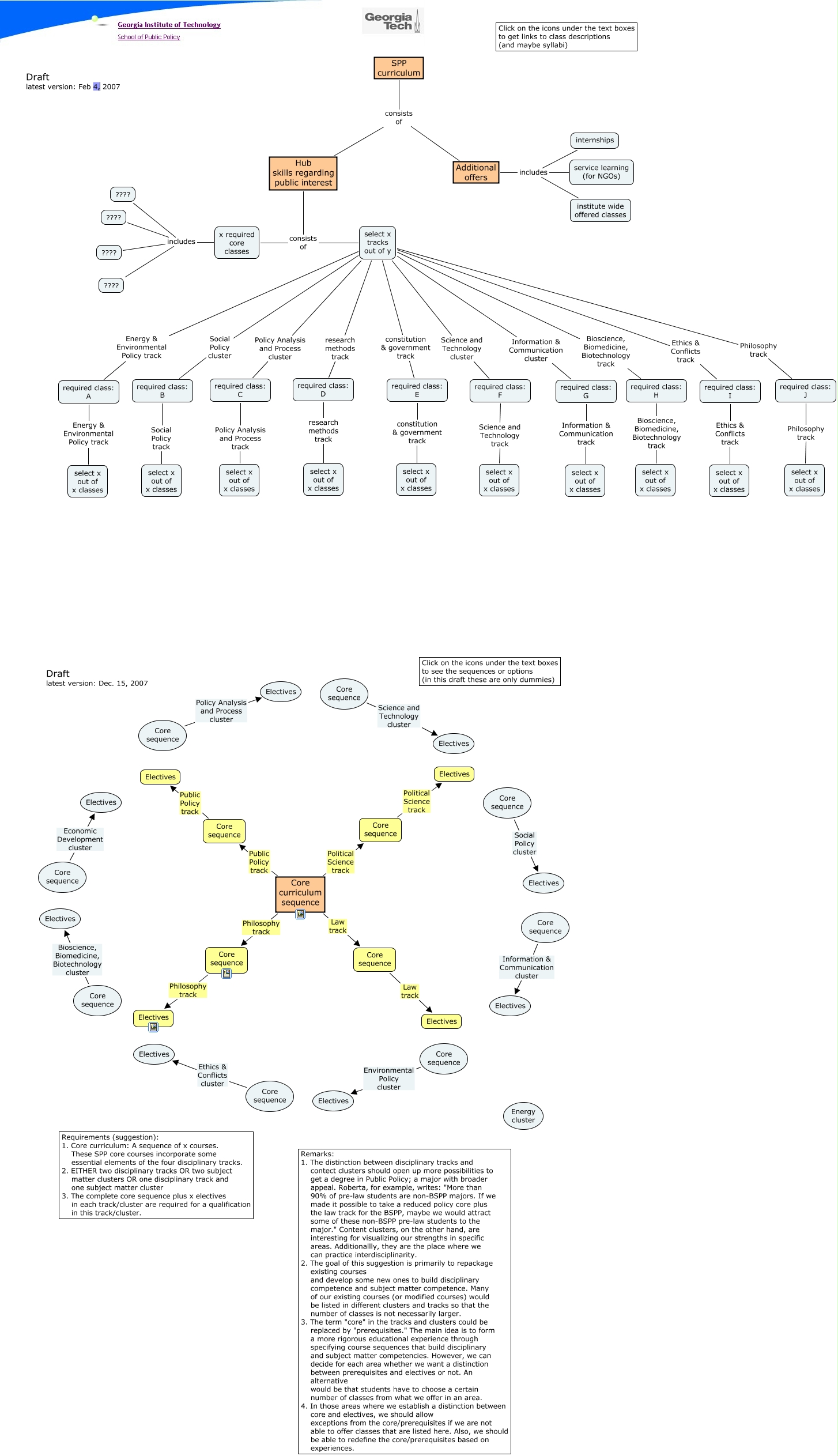 This Concept Map, created with IHMC CmapTools, has information related to: SPP curriculum wheel, SPP curriculum consists of Hub skills regarding public interest, SPP curriculum consists of Additional offers, Core curriculum sequence Political Science track Core sequence, select x tracks out of y Philosophy track required class: J, required class: A Energy & Environmental Policy track select x out of x classes, Core sequence Economic Development cluster Electives, x required core classes includes ????, x required core classes includes ????, Additional offers includes institute wide offered classes, Core sequence Bioscience, Biomedicine, Biotechnology cluster Electives, Core curriculum sequence Philosophy track Core sequence, Core sequence Policy Analysis and Process cluster Electives, select x tracks out of y constitution & government track required class: E, required class: B Social Policy track select x out of x classes, select x tracks out of y Policy Analysis and Process cluster required class: C, required class: C Policy Analysis and Process track select x out of x classes, select x tracks out of y Science and Technology cluster required class: F, Core sequence Science and Technology cluster Electives, required class: D research methods track select x out of x classes, Core curriculum sequence Law track Core sequence