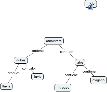 Este mapa conceptual tiene información relacionada a: la atmósfera, nubes produce lluvia, aire contiene oxígeno, atmósfera contiene aire, nubes con calor lluvia, atmósfera contiene nubes, aire contiene nitrógeo