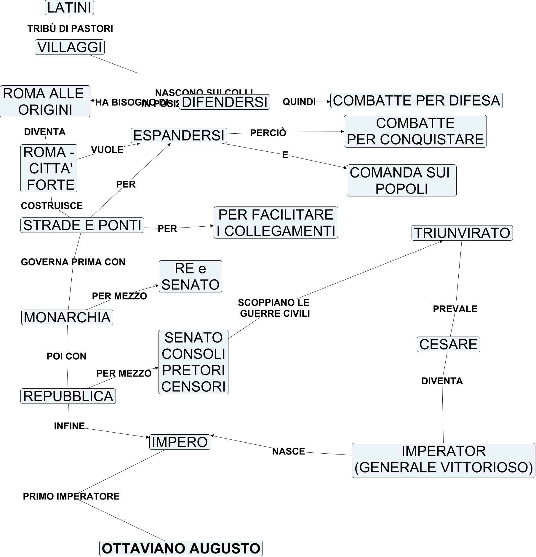 Questa Cmap, creata con IHMC CmapTools, contiene informazioni relative a: ROMANI, ESPANDERSI E COMANDA SUI POPOLI, IMPERATOR (GENERALE VITTORIOSO) NASCE IMPERO, MONARCHIA POI CON REPUBBLICA, VILLAGGI NASCONO SUI COLLI IN POSIZIONE STRATEGICA ROMA ALLE ORIGINI, CESARE DIVENTA IMPERATOR (GENERALE VITTORIOSO), TRIUNVIRATO PREVALE CESARE, LATINI TRIBÙ DI PASTORI VILLAGGI, MONARCHIA PER MEZZO RE e SENATO, STRADE E PONTI PER ESPANDERSI, STRADE E PONTI GOVERNA PRIMA CON MONARCHIA, REPUBBLICA PER MEZZO SENATO CONSOLI PRETORI CENSORI, SENATO CONSOLI PRETORI CENSORI SCOPPIANO LE GUERRE CIVILI TRIUNVIRATO, ROMA - CITTA' FORTE COSTRUISCE STRADE E PONTI, ROMA - CITTA' FORTE VUOLE ESPANDERSI, IMPERO PRIMO IMPERATORE OTTAVIANO AUGUSTO, ROMA ALLE ORIGINI DIVENTA ROMA - CITTA' FORTE, DIFENDERSI QUINDI COMBATTE PER DIFESA, ROMA ALLE ORIGINI HA BISOGNO DI DIFENDERSI, REPUBBLICA INFINE IMPERO, ESPANDERSI PERCIÒ COMBATTE PER CONQUISTARE