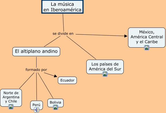 Este mapa conceptual tiene información relacionada a: Index, El altiplano andino formado por Bolivia, El altiplano andino formado por Norte de Argentina y Chile, La música en Iberoamérica se divide en México, América Central y el Caribe, La música en Iberoamérica se divide en Los países de América del Sur, La música en Iberoamérica se divide en El altiplano andino, El altiplano andino formado por Ecuador, El altiplano andino formado por Perú