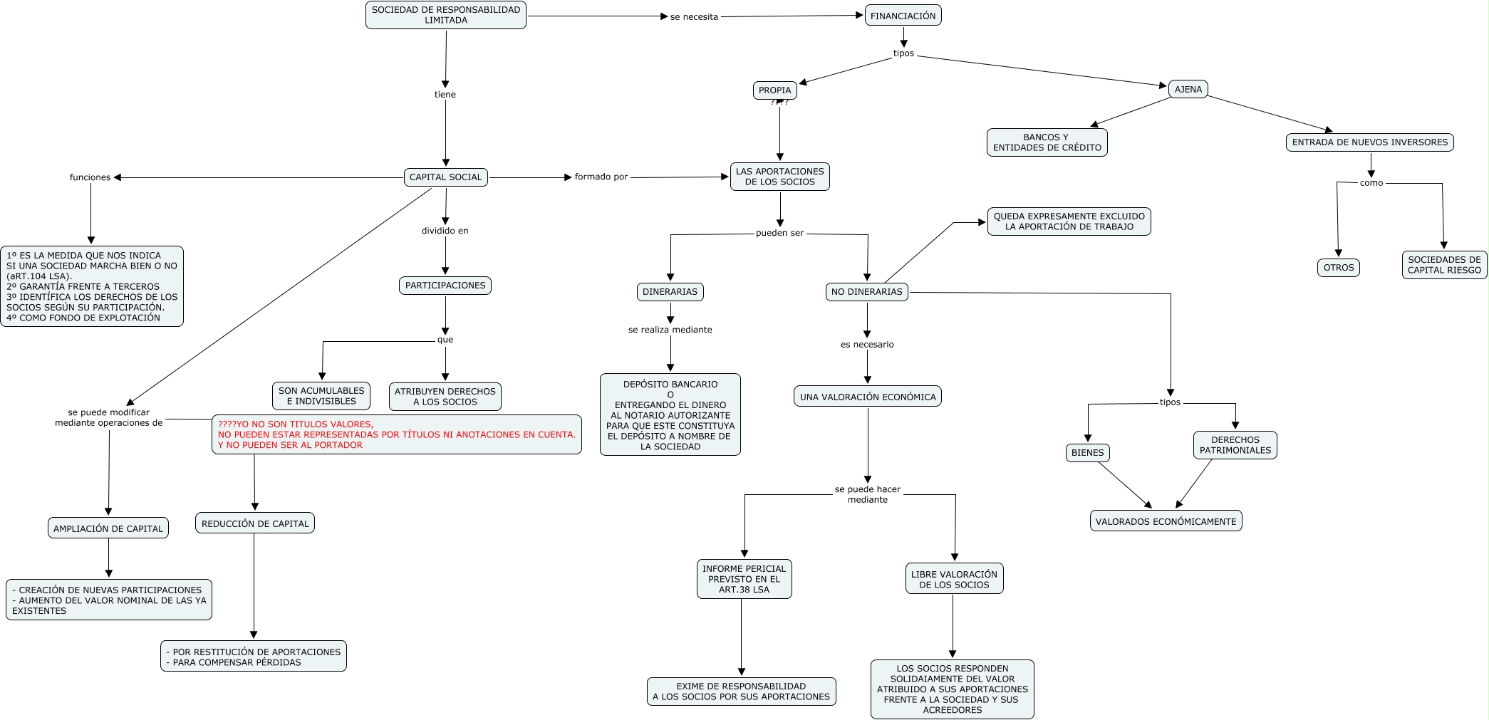 Este Cmap, tiene información relacionada con: PR2 BUSCANDO PADRINOS, SOCIEDAD DE RESPONSABILIDAD LIMITADA tiene CAPITAL SOCIAL, UNA VALORACIÓN ECONÓMICA se puede hacer mediante LIBRE VALORACIÓN DE LOS SOCIOS, ENTRADA DE NUEVOS INVERSORES como OTROS, UNA VALORACIÓN ECONÓMICA se puede hacer mediante INFORME PERICIAL PREVISTO EN EL ART.38 LSA, DERECHOS PATRIMONIALES ???? VALORADOS ECONÓMICAMENTE, FINANCIACIÓN tipos PROPIA, CAPITAL SOCIAL dividido en PARTICIPACIONES, LAS APORTACIONES DE LOS SOCIOS pueden ser DINERARIAS, AJENA ???? ENTRADA DE NUEVOS INVERSORES, ENTRADA DE NUEVOS INVERSORES como SOCIEDADES DE CAPITAL RIESGO, CAPITAL SOCIAL se puede modificar mediante operaciones de REDUCCIÓN DE CAPITAL, REDUCCIÓN DE CAPITAL ???? - POR RESTITUCIÓN DE APORTACIONES - PARA COMPENSAR PÉRDIDAS, LIBRE VALORACIÓN DE LOS SOCIOS ???? LOS SOCIOS RESPONDEN SOLIDAIAMENTE DEL VALOR ATRIBUIDO A SUS APORTACIONES FRENTE A LA SOCIEDAD Y SUS ACREEDORES, NO DINERARIAS es necesario UNA VALORACIÓN ECONÓMICA, PROPIA ???? LAS APORTACIONES DE LOS SOCIOS, INFORME PERICIAL PREVISTO EN EL ART.38 LSA ???? EXIME DE RESPONSABILIDAD A LOS SOCIOS POR SUS APORTACIONES, NO DINERARIAS tipos BIENES, LAS APORTACIONES DE LOS SOCIOS pueden ser NO DINERARIAS, PARTICIPACIONES que ATRIBUYEN DERECHOS A LOS SOCIOS, CAPITAL SOCIAL funciones 1º ES LA MEDIDA QUE NOS INDICA SI UNA SOCIEDAD MARCHA BIEN O NO (aRT.104 LSA). 2º GARANTÍA FRENTE A TERCEROS 3º IDENTÍFICA LOS DERECHOS DE LOS SOCIOS SEGÚN SU PARTICIPACIÓN. 4º COMO FONDO DE EXPLOTACIÓN