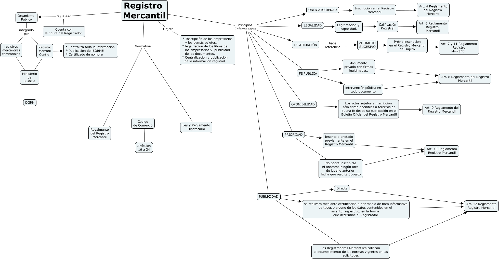 Este Cmap, tiene información relacionada con: Caso 3 Mapa nº3, Inscripción en el Registro Mercantil ???? Art. 4 Reglamento del Registro Mercantil, OBLIGATORIEDAD ???? Inscripción en el Registro Mercantil, Cuenta con la figura del Registrador. ¿Qué es? Organismo Público, Calificación Registral ???? Art. 6 Reglamento Registro Mercantil, LEGITIMACIÓN hace referencia al TRACTO SUCESIVO, Registro Mercantil Normativa Regalmento del Registro Mercantil, Organismo Público integrado por registros mercantiles territoriales, Código de Comercio ???? Artículos 16 a 24, Prévia inscripción en el Registro Mercantil del sujeto ???? Art. 7 y 11 Reglamento Registro Mercantil., PUBLICIDAD ???? Directa, LEGALIDAD ???? Legitimación y capacidad., Registro Mercantil ¿Qué es? Cuenta con la figura del Registrador., Registro Mercatil Central ???? * Centraliza toda la información * Publicación del BORME * Certificado de nombre, al TRACTO SUCESIVO ???? Prévia inscripción en el Registro Mercantil del sujeto, FE PÚBLICA ???? documento privado con firmas legitimadas., Legitimación y capacidad. ???? Calificación Registral, Directa ???? Art. 12 Reglamento Registro Mercantil, Registro Mercantil Principios Informadores LEGALIDAD, PUBLICIDAD ???? se realizará mediante certificación o por medio de nota informativa de todos o alguno de los datos contenidos en el asiento respectivo, en la forma que determine el Registrador, No podrá inscribirse ni anotarse ningún otro de igual o anterior fecha que resulte opuesto ???? Art. 10 Reglamento Registro Mercantil
