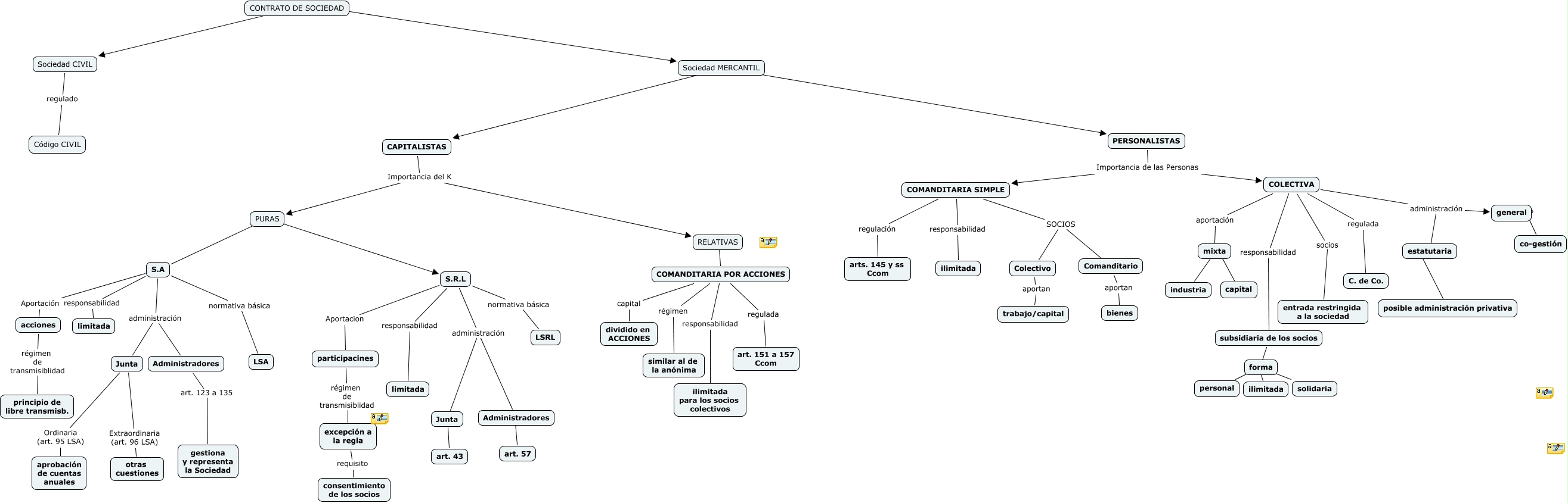 Este mapa conceptual tiene información relacionada a: Principio de Todo (corregido), Junta ???? art. 43, S.R.L Aportacion participacines, S.A normativa básica LSA, S.A administración Junta, RELATIVAS ???? COMANDITARIA POR ACCIONES, COLECTIVA aportación mixta, PURAS ???? S.R.L, Sociedad MERCANTIL ???? PERSONALISTAS, COMANDITARIA SIMPLE regulación arts. 145 y ss Ccom, S.R.L normativa básica LSRL