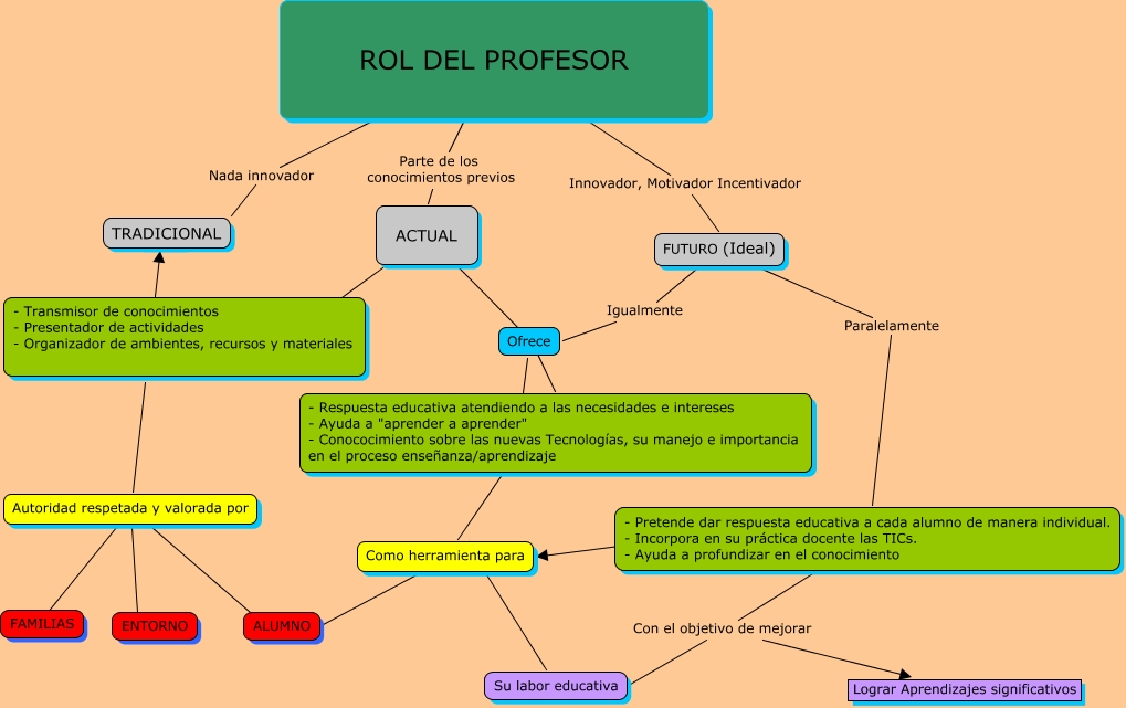 Este Cmap, tiene información relacionada con: Hilo Rol del docente-CortesMuñoz_Beatriz, Autoridad respetada y valorada por ???? ENTORNO, Autoridad respetada y valorada por ???? FAMILIAS, Su labor educativa ALUMNO, ROL DEL PROFESOR Innovador, Motivador Incentivador FUTURO (Ideal), ACTUAL - Respuesta educativa atendiendo a las necesidades e intereses - Ayuda a "aprender a aprender" - Conococimiento sobre las nuevas Tecnologías, su manejo e importancia en el proceso enseñanza/aprendizaje, FUTURO (Ideal) Paralelamente - Pretende dar respuesta educativa a cada alumno de manera individual. - Incorpora en su práctica docente las TICs. - Ayuda a profundizar en el conocimiento, Ofrece ???? Como herramienta para, ACTUAL - Transmisor de conocimientos - Presentador de actividades - Organizador de ambientes, recursos y materiales, ROL DEL PROFESOR Parte de los conocimientos previos ACTUAL, - Pretende dar respuesta educativa a cada alumno de manera individual. - Incorpora en su práctica docente las TICs. - Ayuda a profundizar en el conocimiento ???? Como herramienta para, FUTURO (Ideal) Igualmente Ofrece, ROL DEL PROFESOR Nada innovador TRADICIONAL, - Pretende dar respuesta educativa a cada alumno de manera individual. - Incorpora en su práctica docente las TICs. - Ayuda a profundizar en el conocimiento Con el objetivo de mejorar Su labor educativa, Autoridad respetada y valorada por ???? ALUMNO, - Pretende dar respuesta educativa a cada alumno de manera individual. - Incorpora en su práctica docente las TICs. - Ayuda a profundizar en el conocimiento Con el objetivo de mejorar Lograr Aprendizajes significativos, Autoridad respetada y valorada por ???? ????