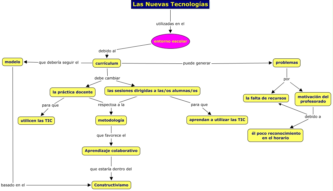 Este Cmap, tiene información relacionada con: Hilo Transversalidad de las TICs - Rodríguez_Delgado_José_Luis, Aprendizaje colaborativo que estaría dentro del Constructivismo, currículum debe cambiar la práctica docente, entorno escolar debido al currículum, currículum puede generar problemas, las sesiones dirigidas a las/os alumnas/os respectoa a la metodología, metodología que favorece el Aprendizaje colaborativo, currículum debe cambiar las sesiones dirigidas a las/os alumnas/os, problemas por motivación del profesorado, Las Nuevas Tecnologías utilizadas en el entorno escolar, modelo basado en el Constructivismo, currículum que debería seguir el modelo, motivación del profesorado debido a la falta de recursos, las sesiones dirigidas a las/os alumnas/os para que aprendan a utilizar las TIC, la práctica docente respectoa a la metodología, problemas por la falta de recursos, la práctica docente para que utilicen las TIC, motivación del profesorado debido a él poco reconocimiento en el horario