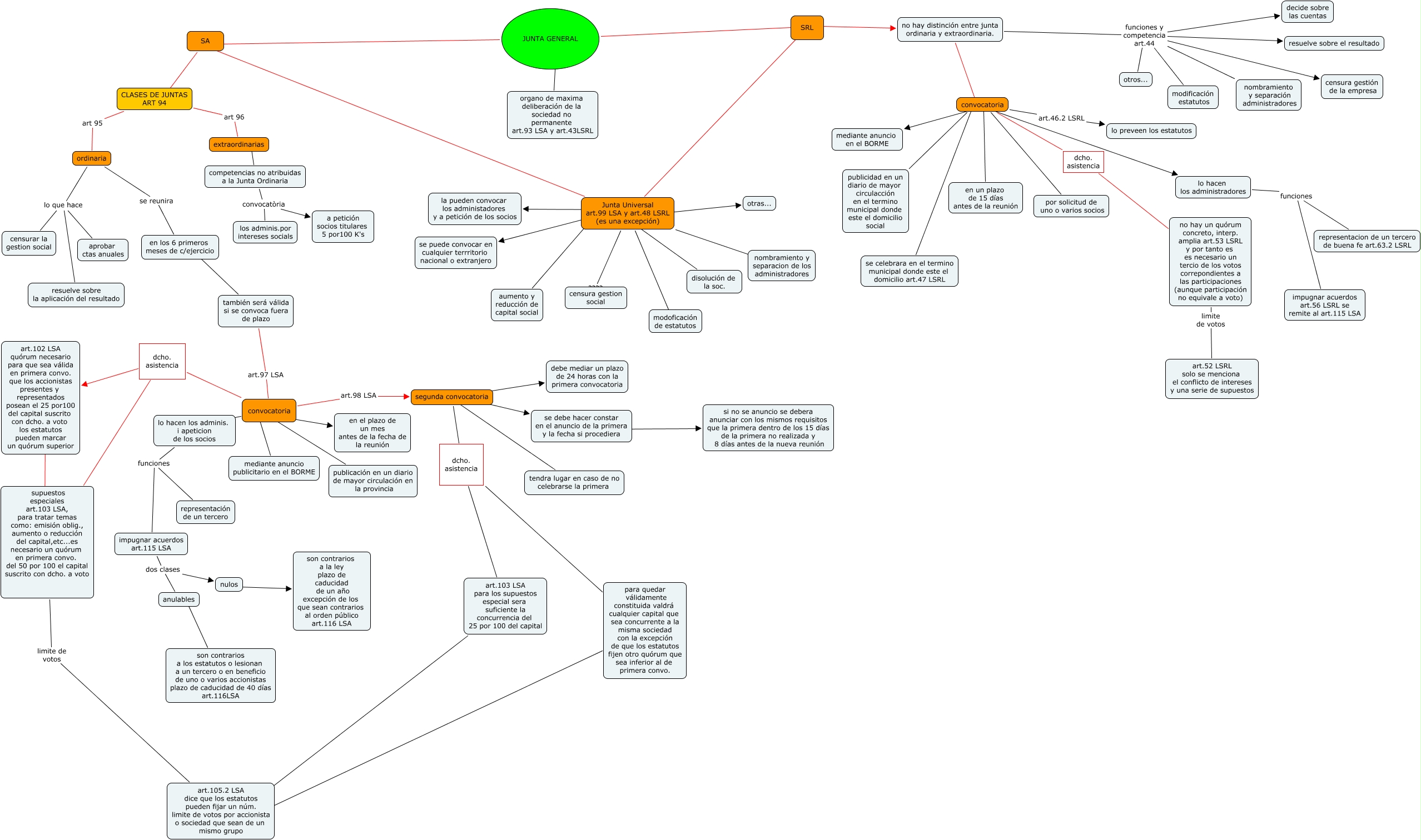 Este Cmap, tiene información relacionada con: practica 5 retocada, convocatoria ???? mediante anuncio en el BORME, SA ???? Junta Universal art.99 LSA y art.48 LSRL (es una excepción), nulos ???? son contrarios a la ley plazo de caducidad de un año excepción de los que sean contrarios al orden público art.116 LSA, ordinaria lo que hace aprobar ctas anuales, no hay distinción entre junta ordinaria y extraordinaria. funciones y competencia art.44 censura gestión de la empresa, CLASES DE JUNTAS ART 94 art 96 extraordinarias, JUNTA GENERAL ???? SA, también será válida si se convoca fuera de plazo art.97 LSA convocatoria, convocatoria ???? por solicitud de uno o varios socios, convocatoria ???? se celebrara en el termino municipal donde este el domicilio art.47 LSRL, competencias no atribuidas a la Junta Ordinaria convocatòria a petición socios titulares 5 por100 K's, ordinaria lo que hace resuelve sobre la aplicación del resultado, convocatoria dcho. asistencia no hay un quórum concreto, interp. amplia art.53 LSRL y por tanto es es necesario un tercio de los votos correpondientes a las participaciones (aunque participación no equivale a voto), convocatoria ???? en un plazo de 15 días antes de la reunión, impugnar acuerdos art.115 LSA dos clases nulos, Junta Universal art.99 LSA y art.48 LSRL (es una excepción) ???? aumento y reducción de capital social, Junta Universal art.99 LSA y art.48 LSRL (es una excepción) ???? la pueden convocar los administadores y a petición de los socios, Junta Universal art.99 LSA y art.48 LSRL (es una excepción) ???? modoficación de estatutos, convocatoria art.46.2 LSRL lo preveen los estatutos, Junta Universal art.99 LSA y art.48 LSRL (es una excepción) ???? disolución de la soc.