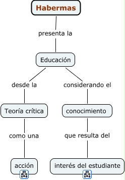 Este mapa conceptual tiene información relacionada a: Educ_Habermas, Teoría crítica como una acción, Educación considerando el conocimiento, conocimiento que resulta del interés del estudiante, Educación desde la Teoría crítica, Habermas presenta la Educación