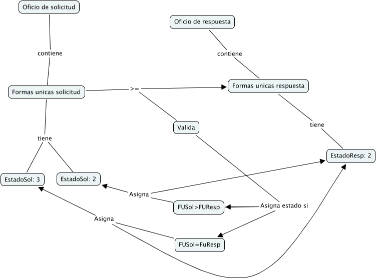 Este Cmap, tiene información relacionada con: 20080415RelOfSolVSOfResp_v1_00, Oficio de respuesta contiene Formas unicas respuesta, Oficio de solicitud contiene Formas unicas solicitud, Formas unicas solicitud >= Formas unicas respuesta, Formas unicas respuesta tiene EstadoResp: 2, FUSol>FUResp Asigna EstadoSol: 2, Valida Asigna estado si FUSol>FUResp, FUSol=FuResp Asigna EstadoResp: 2, Valida Asigna estado si FUSol=FuResp, Formas unicas solicitud >= Valida, Formas unicas solicitud tiene EstadoSol: 3, FUSol=FuResp Asigna EstadoSol: 3, FUSol>FUResp Asigna EstadoResp: 2, Formas unicas solicitud tiene EstadoSol: 2, FUSol>FUResp Asigna estado si ????, FUSol>FUResp Asigna estado si FUSol=FuResp