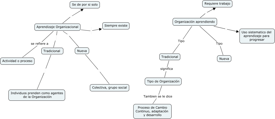 This Concept Map, created with IHMC CmapTools, has information related to: Orglearn vs learnorg (jolivares), Tradicional Individuos prenden como agentes de la Organización, Tradicional significa Tipo de Organización, Aprendizaje Organizacional se refiere a Actividad o proceso, Tipo de Organización Tambien se le dice Proceso de Cambio Continuo, adaptación y desarrollo, Nueva Colectiva, grupo social, Organización aprendiendo Tipo Nueva, Organización aprendiendo Uso sistematico del aprendizaje para progresar, Organización aprendiendo Tipo Tradicional, Organización aprendiendo Requiere trabajo, Aprendizaje Organizacional Nueva, Aprendizaje Organizacional Tradicional, Aprendizaje Organizacional Siempre existe, Aprendizaje Organizacional Se de por si solo