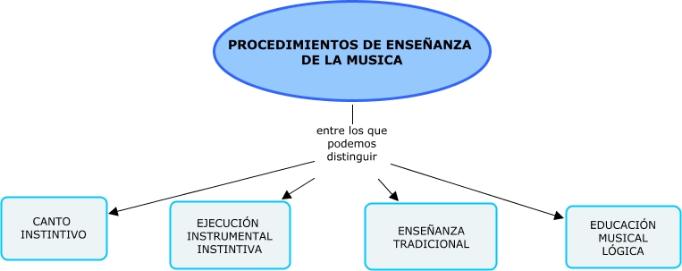 Este mapa conceptual tiene información relacionada a: PROCEDIMIENTOS 0, PROCEDIMIENTOS DE ENSEÑANZA DE LA MUSICA entre los que podemos distinguir ENSEÑANZA TRADICIONAL, PROCEDIMIENTOS DE ENSEÑANZA DE LA MUSICA entre los que podemos distinguir EJECUCIÓN INSTRUMENTAL INSTINTIVA, PROCEDIMIENTOS DE ENSEÑANZA DE LA MUSICA entre los que podemos distinguir EDUCACIÓN MUSICAL LÓGICA, PROCEDIMIENTOS DE ENSEÑANZA DE LA MUSICA entre los que podemos distinguir CANTO INSTINTIVO