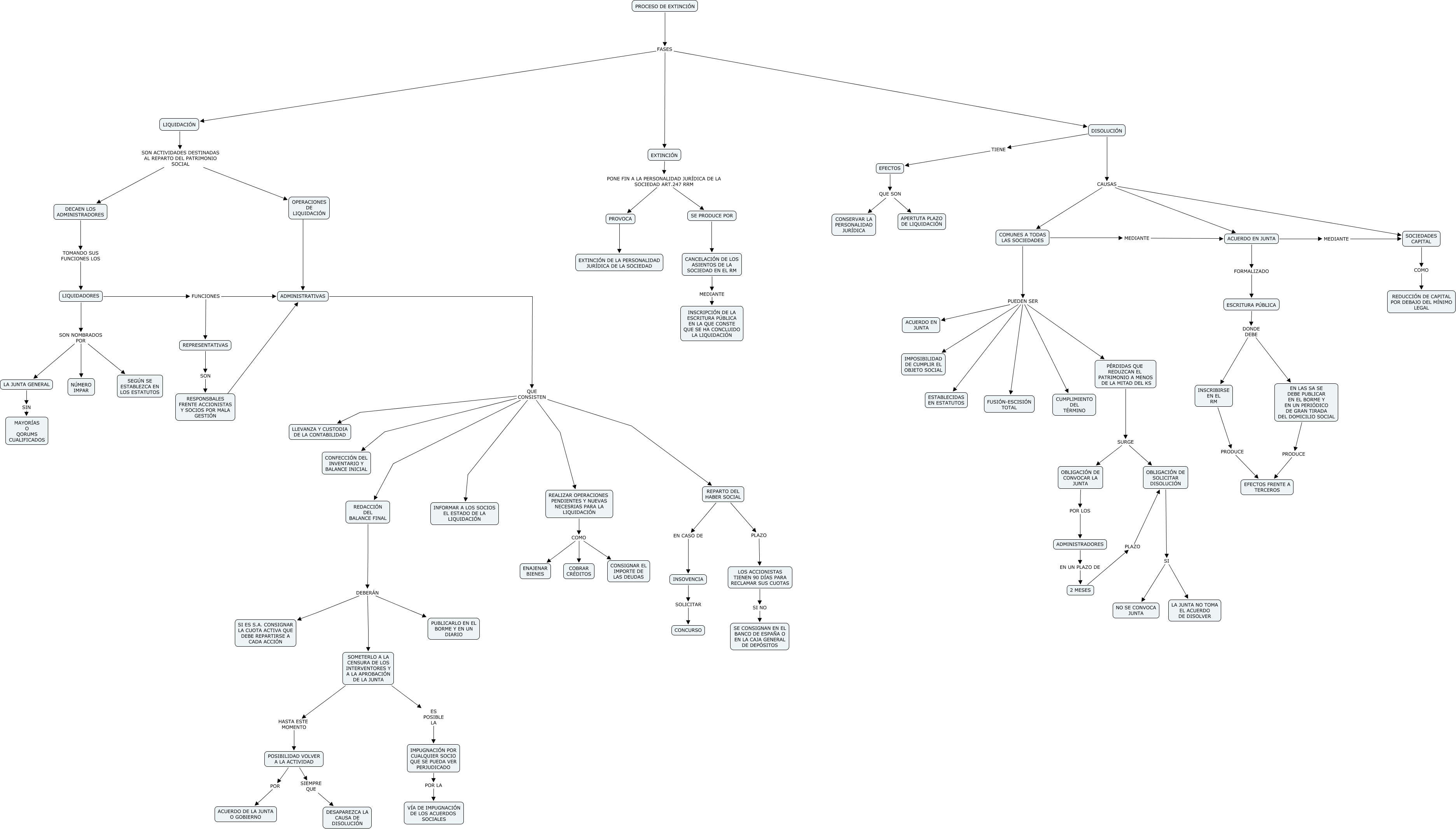 Este mapa conceptual tiene información relacionada a: PR10, ACUERDO EN JUNTA FORMALIZADO ESCRITURA PÚBLICA, OPERACIONES DE LIQUIDACIÓN ???? ADMINISTRATIVAS, PROCESO DE EXTINCIÓN FASES DISOLUCIÓN, DECAEN LOS ADMINISTRADORES TOMANDO SUS FUNCIONES LOS LIQUIDADORES, ACUERDO EN JUNTA MEDIANTE SOCIEDADES CAPITAL, DISOLUCIÓN TIENE EFECTOS, ADMINISTRATIVAS QUE CONSISTEN REPARTO DEL HABER SOCIAL, IMPUGNACIÓN POR CUALQUIER SOCIO QUE SE PUEDA VER PERJUDICADO POR LA VÍA DE IMPUGNACIÓN DE LOS ACUERDOS SOCIALES, COMUNES A TODAS LAS SOCIEDADES PUEDEN SER FUSIÓN-ESCISIÓN TOTAL, LIQUIDADORES SON NOMBRADOS POR NÚMERO IMPAR