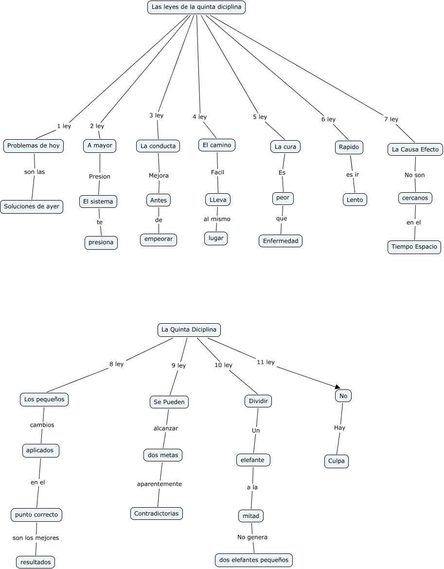 Este Cmap, tiene información relacionada con: capitulo 4, La Quinta Diciplina 11 ley No, Se Pueden alcanzar dos metas, A mayor Presion El sistema, Rapido es ir Lento, Las leyes de la quinta diciplina 4 ley El camino, La Quinta Diciplina 9 ley Se Pueden, Dividir Un elefante, Los pequeños cambios aplicados, dos metas aparentemente Contradictorias, El sistema te presiona, peor que Enfermedad, punto correcto son los mejores resultados, Las leyes de la quinta diciplina 5 ley La cura, Las leyes de la quinta diciplina 1 ley Problemas de hoy, La cura Es peor, La Quinta Diciplina 8 ley Los pequeños, elefante a la mitad, Problemas de hoy son las Soluciones de ayer, aplicados en el punto correcto, La conducta Mejora Antes