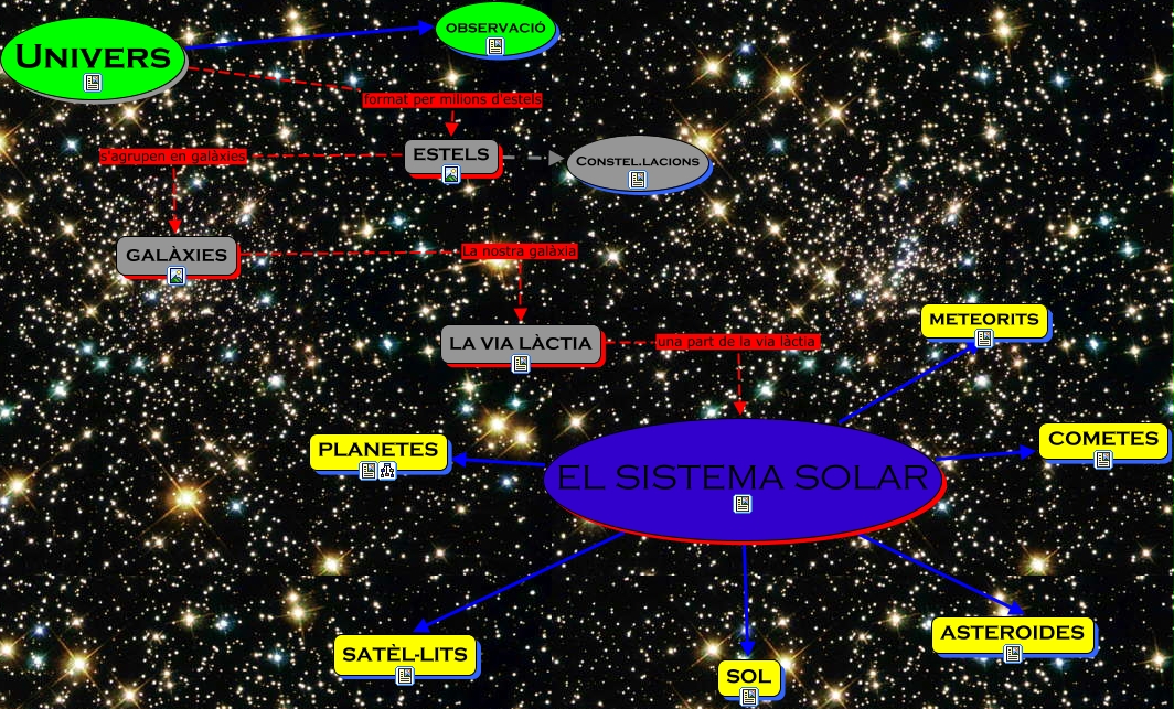Este Cmap, tiene información relacionada con: UNIVERS, EL SISTEMA SOLAR COMETES, LA VIA LÀCTIA una part de la via làctia EL SISTEMA SOLAR, Univers format per milions d'estels ESTELS, ESTELS s'agrupen en galàxies GALÀXIES, ESTELS Constel.lacions, GALÀXIES La nostra galàxia LA VIA LÀCTIA, EL SISTEMA SOLAR SATÈL-LITS, EL SISTEMA SOLAR SOL, EL SISTEMA SOLAR PLANETES, EL SISTEMA SOLAR ASTEROIDES, Univers ???? OBSERVACIÓ, EL SISTEMA SOLAR meteorits