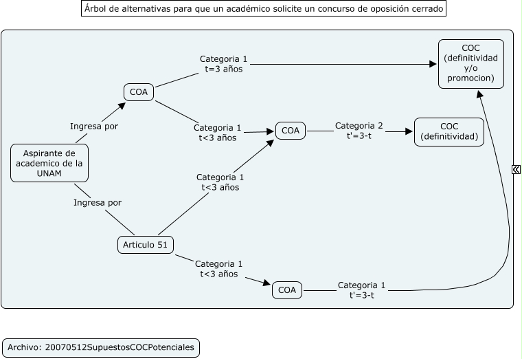 Este Cmap, tiene información relacionada con: 20080512SupuestosCOCPotenciales_v1_00, COA Categoria 1 t=3 años COC (definitividad y/o promocion), Aspirante de academico de la UNAM Ingresa por COA, COA Categoria 1 t'=3-t COC (definitividad y/o promocion), Articulo 51 Categoria 1 tɛ años COA, Articulo 51 Categoria 1 tɛ años COA, Aspirante de academico de la UNAM Ingresa por Articulo 51, COA Categoria 1 tɛ años COA, COA Categoria 2 t'=3-t COC (definitividad)