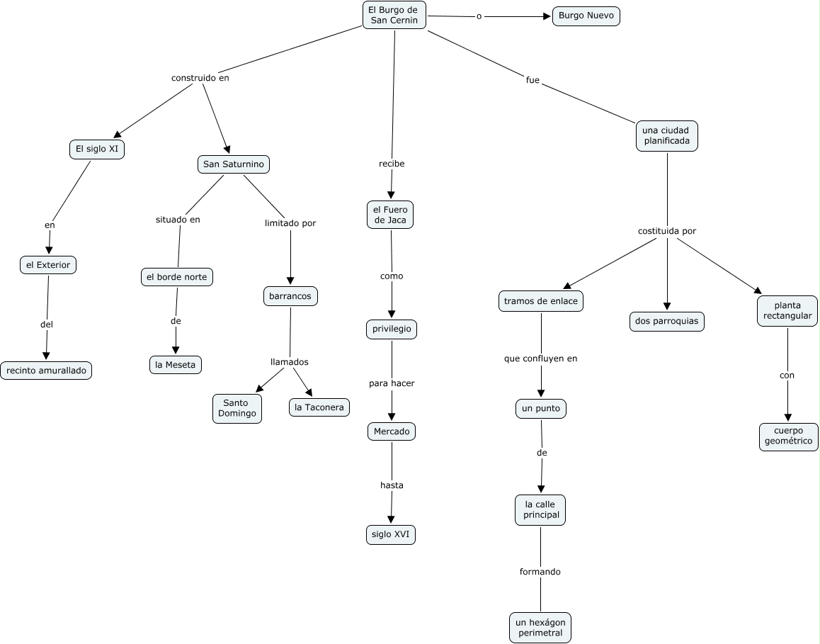 burgos, un punto de la calle principal, Mercado hasta siglo XVI, planta rectangular con cuerpo geométrico, la calle principal formando un hexágon perimetral, barrancos llamados la Taconera, una ciudad planificada costituida por planta rectangular, barrancos llamados Santo Domingo, San Saturnino situado en el borde norte, San Saturnino limitado por barrancos, El Burgo de San Cernin construido en El siglo XI