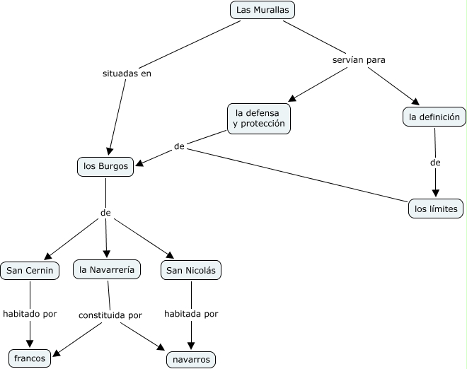 las murallas, San Nicolás habitada por navarros, Las Murallas situadas en los Burgos, la defensa y protección de los Burgos, los Burgos de San Cernin, la Navarrería constituida por navarros, los Burgos de San Nicolás, Las Murallas servían para la definición, los límites de los Burgos, San Cernin habitado por francos, Las Murallas servían para la defensa y protección