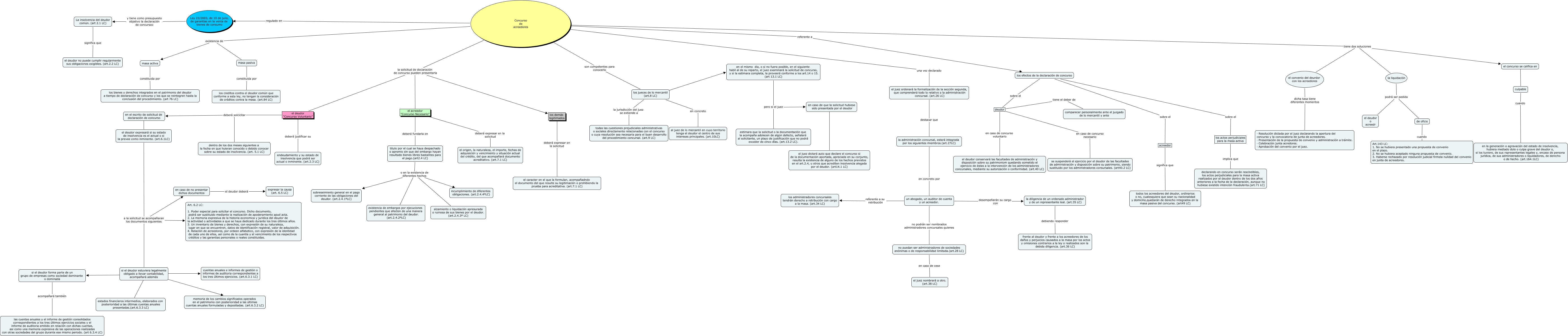 Este mapa conceptual tiene información relacionada a: caso10merca2, el concurso se califica en ???? culpable, Concurso de acreedores una vez declarado el juez ordenará la formalización de la sección segunda, que comprenderá todo lo relativo a la administración concursal. (art.26 LC), el deudor expresará si su estado de insolvencia es el actual o si la prevee como inminente. (art.6.1LC) a la solicitud se acompañaran los documentos siguientes Art. 6.2 LC: 1. Poder especial para solicitar el concurso. Dicho documento, podrá ser sustituido mediante la realización de apoderamiento apud acta. 2. La memoria expresiva de la historia economica y juridica del deudor de la actividad o actividades a que se haya dedicado durante los tres últimos años. 3. Un inventario de bienes y derechos, con expresión de su naturaleza, lugar en que se encuentren, datos de identificación registral, valor de adquisición. 4. Relación de acreedores, por ordeen alfabetico, con expresión de la identidad de cada uno de ellos, así como de la cuantía y el vencimiento de los respectivos créditos y las garantias personales o reales constituidas., si el deudor estuviera legalmente obligado a llevar contabilidad, acompañará además ???? cuentas anuales e informes de gestión o informes de auditoria correspondientes a los tres últimos ejercicios. (art.6.3.1 LC), la liquidación podrá ser pedida de oficio, en caso de no presentar dichos documentos el deudor deberá expresar la causa (art. 6.5 LC), masa pasiva constituida por los creditos contra el deudor común que conforme a esta ley, no tengan la consideración de créditos contra la masa. (art.84 LC), Ley 22/2003, de 10 de julio, de garantías en la venta de bienes de consumo y tiene como presupuesto objetivo la declaración de concursoo La insolvencia del deudor común. (art 2.1 LC), en caso de que la solicitud hubiese sido presentada por el deudor el juez dictará auto que declare el concurso si de la documentación aportada, apreciada en su conjunto, resulta la existencia de alguno de los hechos previstos en el art.2.4, u otros que acrediten insolvencia alegada por el deudor. (art14.1 LC), Concurso de acreedores existencia de masa pasiva