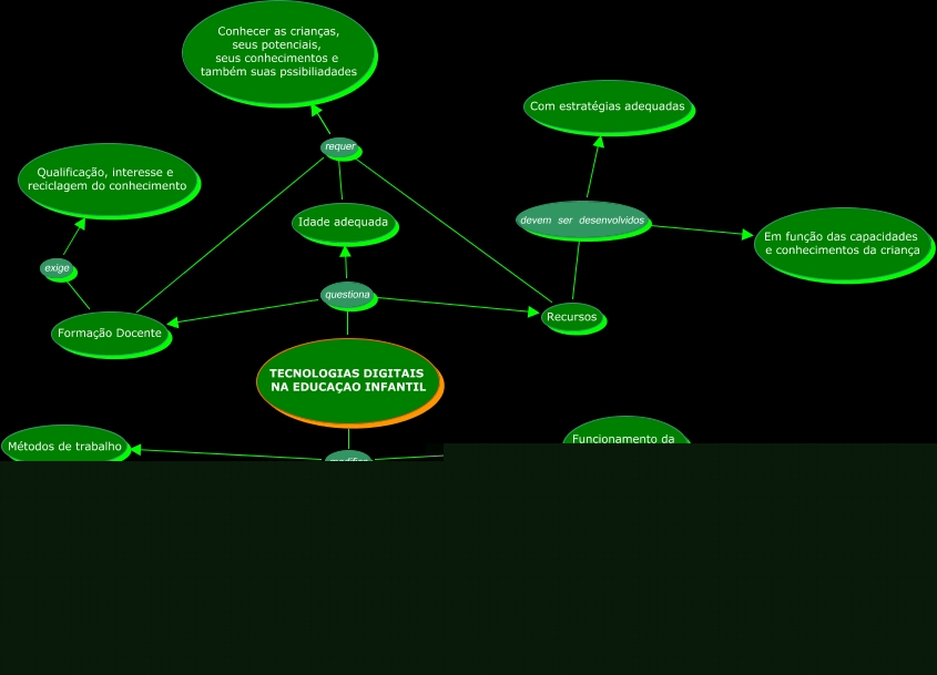 projeto_PA_mundo_digital_20088, Idade adequada requer Conhecer as crianças, seus potenciais, seus conhecimentos e também suas pssibiliadades, TECNOLOGIAS DIGITAIS NA EDUCAÇAO INFANTIL questiona Recursos, Recursos devem ser desenvolvidos Em função das capacidades e conhecimentos da criança, Recursos requer Formação Docente, TECNOLOGIAS DIGITAIS NA EDUCAÇAO INFANTIL modifica Funcionamento da instituição escola, TECNOLOGIAS DIGITAIS NA EDUCAÇAO INFANTIL modifica Substancialmente a maneira de aprender e ensinar, TECNOLOGIAS DIGITAIS NA EDUCAÇAO INFANTIL questiona Formação Docente, Recursos requer Conhecer as crianças, seus potenciais, seus conhecimentos e também suas pssibiliadades, Idade adequada requer Formação Docente, TECNOLOGIAS DIGITAIS NA EDUCAÇAO INFANTIL modifica Métodos de trabalho