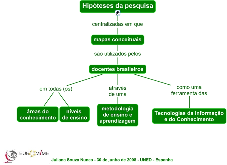 Esse mapa conceitual, produzido no IHMC CmapTools, tem a informação relacionada a: apres4 hipoteses, mapas conceituais são utilizados pelos docentes brasileiros, docentes brasileiros em todas (os) áreas do conhecimento, docentes brasileiros como uma ferramenta das Tecnologias da Informação e do Conhecimento, docentes brasileiros através de uma metodologia de ensino e aprendizagem, Hipóteses da pesquisa centralizadas em que mapas conceituais, docentes brasileiros em todas (os) níveis de ensino