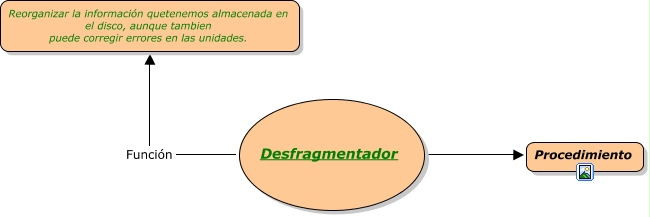 Este Cmap, tiene información relacionada con: Desfragmentador, Desfragmentador Función Reorganizar la información quetenemos almacenada en el disco, aunque tambien puede corregir errores en las unidades., Desfragmentador ???? Procedimiento
