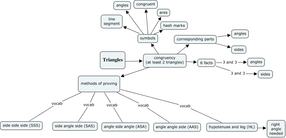 becky_congruent_triangles, methods of proving vocab angle angle side (AAS), symbols ???? congruent, 6 facts 3 and 3 sides, congruency (at least 2 triangles) ???? symbols, hypotenuse and leg (HL) ???? right angle needed, congruency (at least 2 triangles) ???? 6 facts, methods of proving vocab hypotenuse and leg (HL), symbols ???? hash marks, methods of proving vocab side side side (SSS), symbols ???? line segment