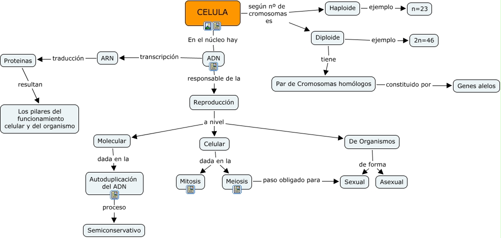 Este Cmap, tiene información relacionada con: Trabajo Biología ADN, CELULA según nº de cromosomas es Haploide, Reproducción a nivel Celular, Reproducción a nivel Molecular, Diploide tiene Par de Cromosomas homólogos, Celular dada en la Mitosis, Autoduplicación del ADN proceso Semiconservativo, Proteinas resultan Los pilares del funcionamiento celular y del organismo, Haploide ejemplo n=23, Meiosis paso obligado para Sexual, CELULA según nº de cromosomas es Diploide, Par de Cromosomas homólogos constituido por Genes alelos, De Organismos de forma Asexual, ADN responsable de la Reproducción, De Organismos de forma Sexual, Molecular dada en la Autoduplicación del ADN, CELULA En el núcleo hay ADN, ADN transcripción ARN, ARN traducción Proteinas, Celular dada en la Meiosis, Reproducción a nivel De Organismos