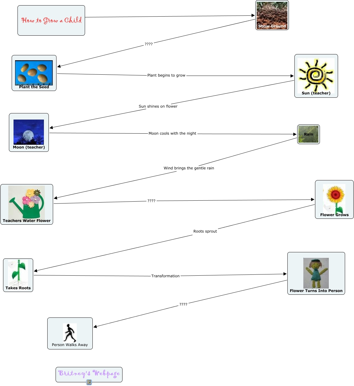 This Concept Map, created with IHMC CmapTools, has information related to: How to Grow a Child, Plant the Seed Plant begins to grow Sun (teacher), Sun (teacher) Sun shines on flower Moon (teacher), Flower Turns Into Person ???? Person Walks Away, How to Grow a Child ???? Show Ground, Takes Roots Transformation Flower Turns Into Person, Moon (teacher) Moon cools with the night Rain, Show Ground ???? Plant the Seed, Rain Wind brings the gentle rain Teachers Water Flower, Flower Grows Roots sprout Takes Roots, Teachers Water Flower ???? Flower Grows