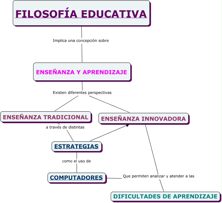 Este mapa conceptual tiene información relacionada a: de Tomas, Zazzari, Riccardi y Prego, ESTRATEGIAS ENSEÑANZA INNOVADORA, ENSEÑANZA Y APRENDIZAJE Existen diferentes perspectivas ENSEÑANZA TRADICIONAL, FILOSOFÍA EDUCATIVA Implica una concepción sobre ENSEÑANZA Y APRENDIZAJE, ESTRATEGIAS como el uso de COMPUTADORES, ENSEÑANZA TRADICIONAL a través de distintas ESTRATEGIAS, COMPUTADORES Que permiten analizar y atender a las DIFICULTADES DE APRENDIZAJE, ENSEÑANZA INNOVADORA Que permiten analizar y atender a las DIFICULTADES DE APRENDIZAJE, ENSEÑANZA Y APRENDIZAJE Existen diferentes perspectivas ENSEÑANZA INNOVADORA
