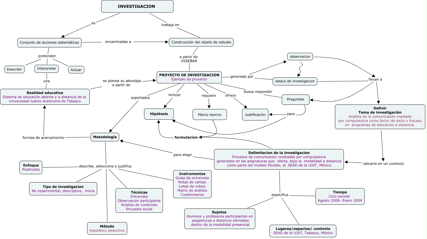 Este Cmap, tiene información relacionada con: Investigacion Educativa Angélica Fabila E, ???? soportados Metodología, observacion llevan a Preguntas, Marco teorico formulacion Hipótesis, Delimitacion de la investigacion Procesos de comunicacion mediadas por computadora generados en las asignaturas que oferta, bajo la modalidad a distancia como parte del modelo flexible, el SEAD de la UJAT, México. especifica Sujetos Alumnos y profesores participantes en asiganturas a distancia ofertadas dentro de la modalidad presencial, PROYECTO DE INVESTIGACION Ejemplo de proyecto generado por idea/s de investigacion, Delimitacion de la investigacion Procesos de comunicacion mediadas por computadora generados en las asignaturas que oferta, bajo la modalidad a distancia como parte del modelo flexible, el SEAD de la UJAT, México. formulacion Hipótesis, Preguntas para Justificación, Metodología describe, selecciona y justifica Técnicas Entrevista Observacion participante Analisis de contenido Encuesta social, Delimitacion de la investigacion Procesos de comunicacion mediadas por computadora generados en las asignaturas que oferta, bajo la modalidad a distancia como parte del modelo flexible, el SEAD de la UJAT, México. especifica Lugares/espacios/ contexto SEAD de la UJAT, Tabasco, México, PROYECTO DE INVESTIGACION Ejemplo de proyecto requiere Marco teorico, Construcción del objeto de estudio a partir de DISEÑAR PROYECTO DE INVESTIGACION Ejemplo de proyecto, INVESTIGACION trabaja en Construcción del objeto de estudio, idea/s de investigacion llevan a Definir Tema de investigación Análisis de la comunicación mediada por computadora como factor de éxito o fracaso en programas de educación a distancia., PROYECTO DE INVESTIGACION Ejemplo de proyecto busca responder Preguntas, Definir Tema de investigación Análisis de la comunicación mediada por computadora como factor de éxito o fracaso en programas de educación a distancia. ubicarlo en un contexto Delimitacion de la investigacion Procesos de comunicacion mediadas por computadora generados en las asignaturas que oferta, bajo la modalidad a distancia como parte del modelo flexible, el SEAD de la UJAT, México., Delimitacion de la investigacion Procesos de comunicacion mediadas por computadora generados en las asignaturas que oferta, bajo la modalidad a distancia como parte del modelo flexible, el SEAD de la UJAT, México. para elegir Metodología, PROYECTO DE INVESTIGACION Ejemplo de proyecto ofrece Justificación, Metodología describe, selecciona y justifica Instrumentos Guías de entrevista Notas de campo Listas de cotejo Matriz de análisis Cuestionarios, observacion llevan a Definir Tema de investigación Análisis de la comunicación mediada por computadora como factor de éxito o fracaso en programas de educación a distancia., PROYECTO DE INVESTIGACION Ejemplo de proyecto incluye Hipótesis
