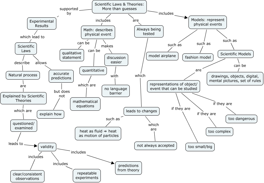 physical science 1-1-3, Experimental Results which lead to Scientific Laws, leads to changes which are not always accepted, Models: represent physical events such as model airplane, Scientific Laws & Theories: More than guesses are Always being tested, validity includes repeatable experiments, discussion easier with no language barrier, validity includes clear/consistent observations, Scientific Laws & Theories: More than guesses includes Math: describes physical event, Scientific Laws & Theories: More than guesses supported by Experimental Results, Scientific Models are representations of object/ event that can be studied