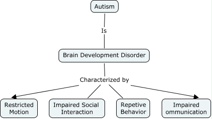 This Concept Map, created with IHMC CmapTools, has information related to: Preautism, Autism Is Brain Development Disorder, Brain Development Disorder Characterized by Impaired ommunication, Brain Development Disorder Characterized by Impaired Social Interaction, Brain Development Disorder Characterized by Restricted Motion, Brain Development Disorder Characterized by Repetive Behavior