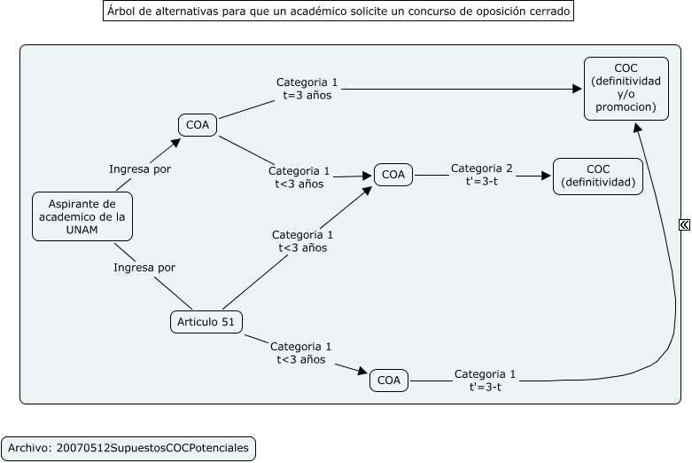 Este Cmap, tiene información relacionada con: 20080512SupuestosCOCPotenciales_v1_01, COA Categoria 1 t=3 años COC (definitividad y/o promocion), Articulo 51 Categoria 1 tɛ años COA, COA Categoria 2 t'=3-t COC (definitividad), Aspirante de academico de la UNAM Ingresa por Articulo 51, COA Categoria 1 tɛ años COA, Articulo 51 Categoria 1 tɛ años COA, Aspirante de academico de la UNAM Ingresa por COA, COA Categoria 1 t'=3-t COC (definitividad y/o promocion)