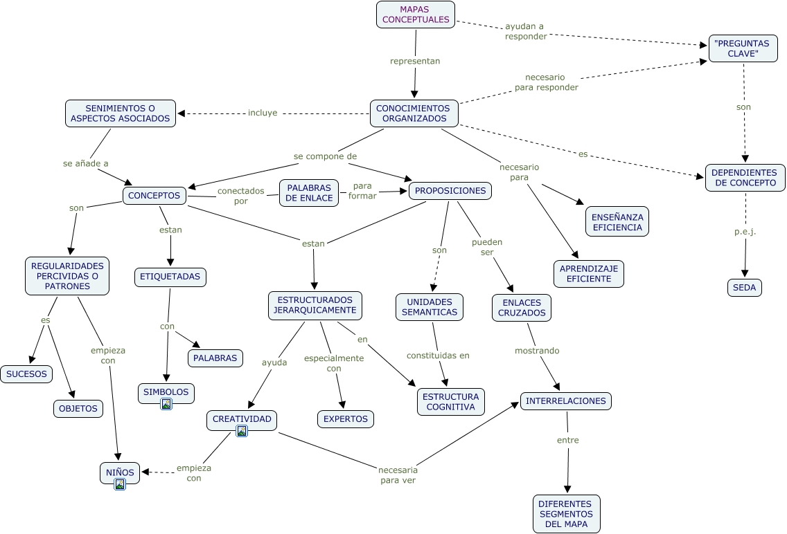 Este Cmap, tiene información relacionada con: MAPAS CONCEPTUALES 2, ESTRUCTURADOS JERARQUICAMENTE especialmente con EXPERTOS, CONOCIMIENTOS ORGANIZADOS necesario para responder "PREGUNTAS CLAVE", ESTRUCTURADOS JERARQUICAMENTE en ESTRUCTURA COGNITIVA, CONOCIMIENTOS ORGANIZADOS necesario para APRENDIZAJE EFICIENTE, CONOCIMIENTOS ORGANIZADOS incluye SENIMIENTOS O ASPECTOS ASOCIADOS, ETIQUETADAS con PALABRAS, CONCEPTOS estan ETIQUETADAS, CONOCIMIENTOS ORGANIZADOS necesario para ENSEÑANZA EFICIENCIA, ESTRUCTURADOS JERARQUICAMENTE ayuda CREATIVIDAD, SENIMIENTOS O ASPECTOS ASOCIADOS se añade a CONCEPTOS, CONOCIMIENTOS ORGANIZADOS se compone de CONCEPTOS, DEPENDIENTES DE CONCEPTO p.e.j. SEDA, "PREGUNTAS CLAVE" son DEPENDIENTES DE CONCEPTO, CONCEPTOS estan ESTRUCTURADOS JERARQUICAMENTE, CREATIVIDAD empieza con NIÑOS, REGULARIDADES PERCIVIDAS O PATRONES es SUCESOS, ETIQUETADAS con SIMBOLOS, REGULARIDADES PERCIVIDAS O PATRONES es OBJETOS, MAPAS CONCEPTUALES representan CONOCIMIENTOS ORGANIZADOS, PROPOSICIONES estan ESTRUCTURADOS JERARQUICAMENTE